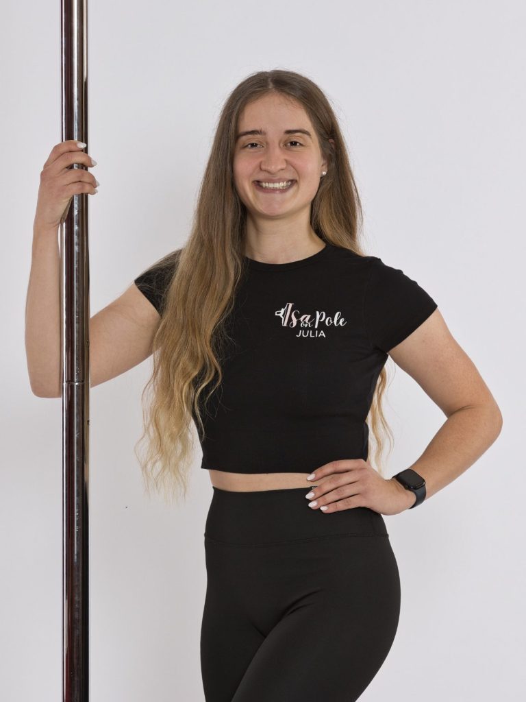 Als Kind habe ich einige Jahre Ballett getanzt und weiß, wie viel Freude mir eine Kombination aus Tanz und Sport bereitet. Auf der Suche nach einem neuen Hobby dachte ich lange über Pole dance nach und war anfangs unsicher. 2020 begann ich in Regensburg mit aerial Hoop, doch leider wurde der Kurs wegen Corona eingestellt. Um meine Zehnerkarte nicht verfallen zu lassen, probierte ich Pole dance aus und war sofort begeistert. Dann habe ich angefangen bei Isabella zu trainieren. Mir macht Pole sehr viel Spaß und ich möchte andere Leute motivieren und helfen, diesen Sport auszuüben, weil Pole dance mein eigenes Leben sehr zum Positiven verändert hat. Ich bin seitdem viel selbstbewusster, fitter und ich habe dadurch viele neue Freunde gefunden, die mein Interesse teilen. Deshalb habe ich 2023 beschlossen, eine Pole dance Ausbildung zu machen und ich freue mich euch zu unterrichten.
